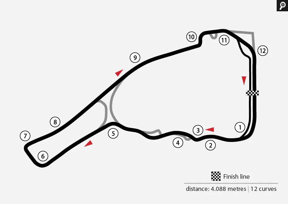 Turn 4: Again, not a turn in your slow pile. Stay track left as much as reasonable without binding up the car to set up for the esses. You'll go to 4th somewhere in here.